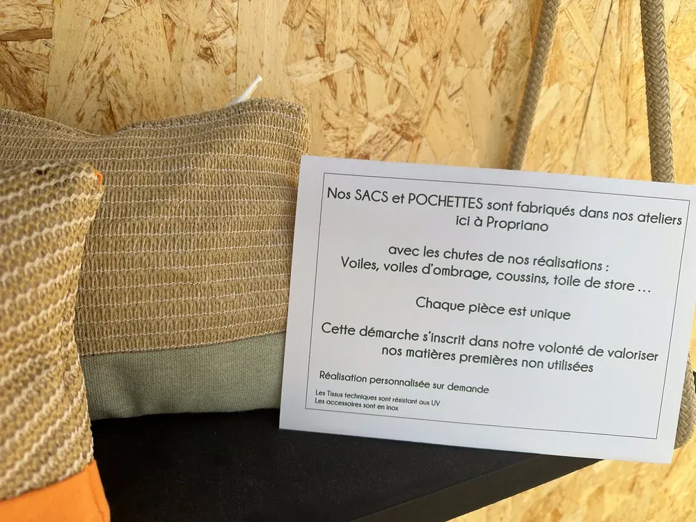 Chez WATTOU, nous sommes fiers de lancer notre nouvelle collection de sacs de plage en upcycling, une initiative qui allie style, durabilité et respect de l'environnement. Basés à Propriano, nous mettons à profit notre expertise en fabrication et pose de stores, de pergolas, de voiles d’ombrage, ainsi que notre savoir-faire en sellerie et voilerie nautique, pour créer des produits uniques et écoresponsables. Notre engagement envers la qualité et l'innovation nous permet de proposer des articles textiles d’extérieur sur-mesure qui répondent aux besoins de nos clients tout en respectant notre belle région de Corse.